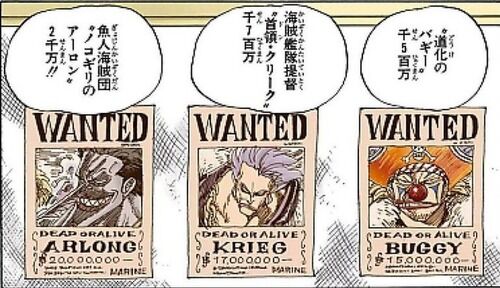 過去の経歴と能力者なことを隠してたバギーが1500万で50隻の艦隊と5000人の兵力を率いてるクリークが1700万ってバランスおかしいわ