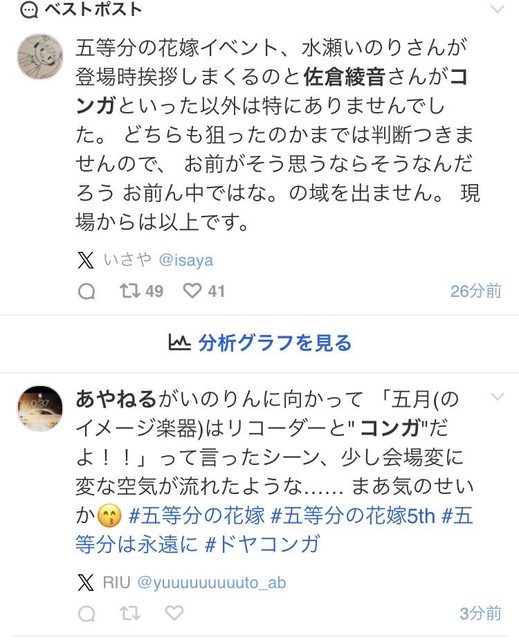 「五等分の花嫁」イベント、佐倉綾音が水瀬いのりにコンガ連呼し会場ヒエヒエの悲報 2024年06月02日 観たいアニメが見つかるかも!! 1:アニメまとめCH@ID:r1xoIPS/0 アニメまとめCH@ID:teN63A8s0 トップへ戻る 【「五等分の花嫁」イベント、佐倉綾音が水瀬いのりにコンガ連呼し会場ヒエヒエの悲報】の続きを読む