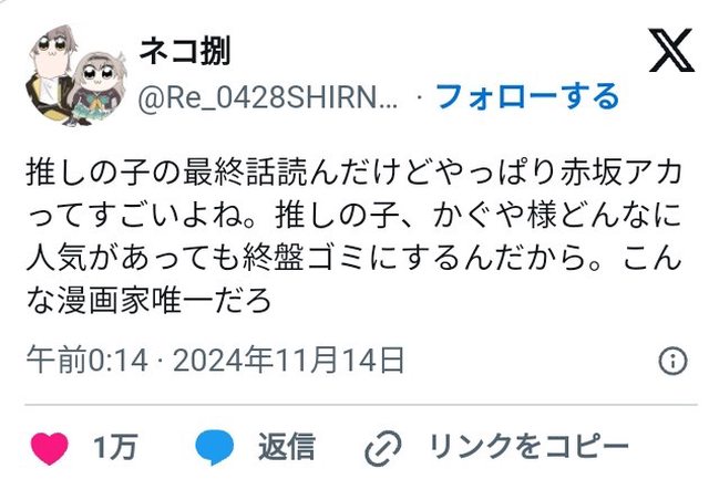 推しの子最終回が叩かれてるんじゃなくて推しの子そのものの評価がそれなんやろ